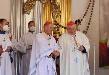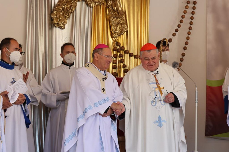 V úvode slávnosti košický pomocný biskup Marek Forgáč privítal kardinála Dominika Duku, ktorému je úcta k Panne Márii Ružencovej blízka aj pre jeho dominikánsku spiritualitu. Snímka: Jaroslav Fabian