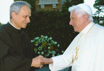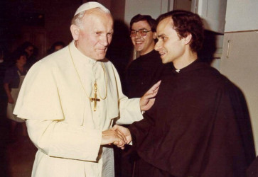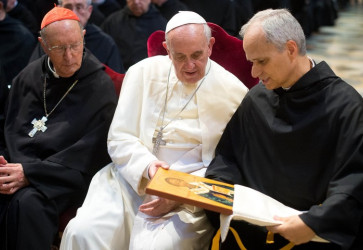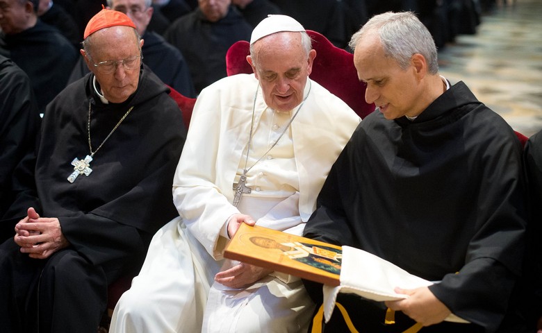 Pápež František sa 28. augusta 2013, na sviatok sv. Augustína, stretol v Ríme s členmi augustiniánskej rehole, medzi ktorými nechýbal páter Prevost. Snímka: profimedia.sk