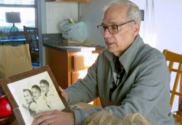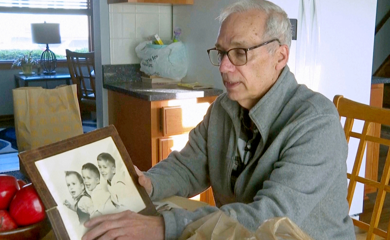 John Prevost, jeden z dvoch starších bratov pápeža Leva XIV., ukazuje súrodeneckú fotografiu z rodinného archívu. Snímka: profimedia.sk