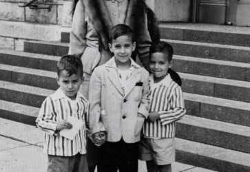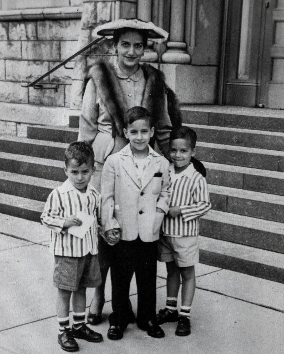 Robert Francis Prevost (prvý zľava) s mamou Mildred a bratmi Louisom a Johnom pred Katedrálou Najsvätejšieho mena v Chicagu. Snímka: profimedia.sk