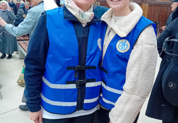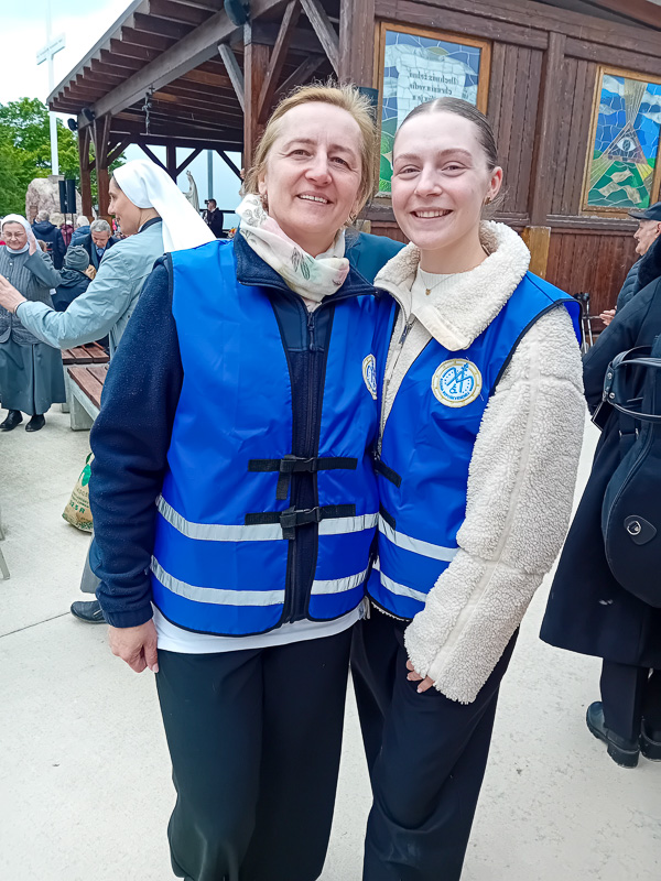 Členky Rodiny Nepoškvrnenej Mária (vľavo) a Veronika (vpravo) pomáhali pri organizácii púte. Snímka: Lívia Dvorská