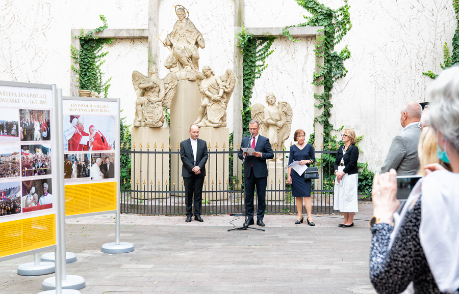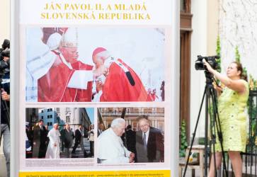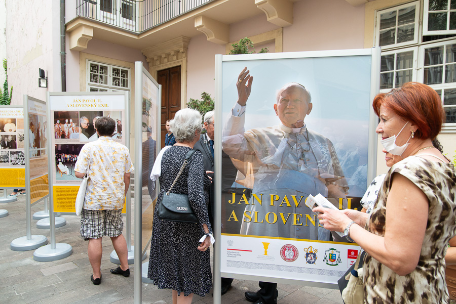 Nádvorie sv. Jána Nepomuckého Primaciálneho paláca v Bratislave bude do 31. júla zaplnené fotografiami, textami a zaujímavosťami zo života Jána Pavla II.