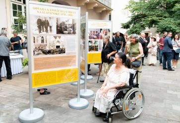 Profesorka Emília Hrabovec, autorka výstavy pri otvorení výstavy Ján Pavol II. a Slovensko (za mikrofónom). Snímka: Erika Litváková/KN