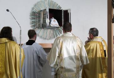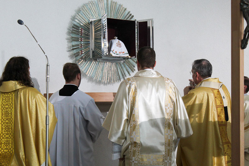 V závere slávnosti uložili Eucharistiu do svätostánku a zapálilo sa večné svetlo. Snímka: Monika Šimoničová