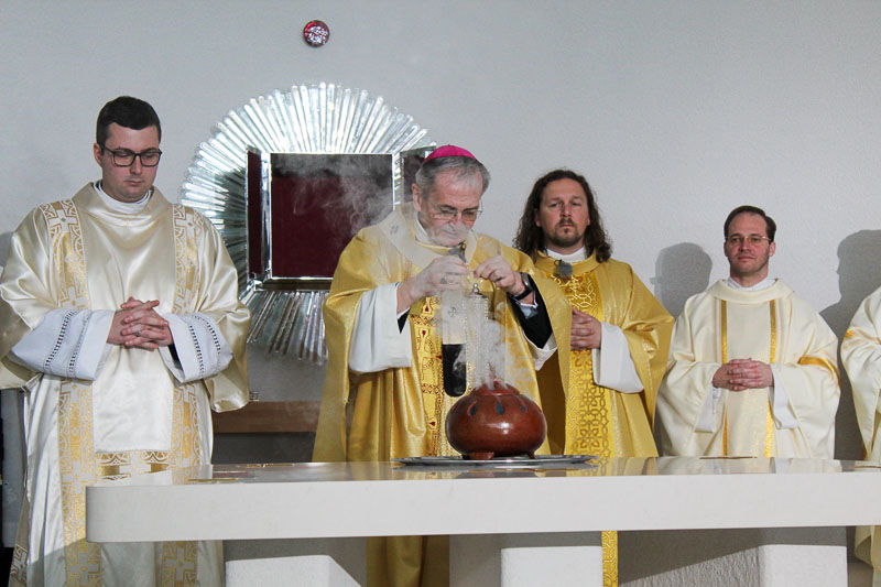 Do nádoby so žeravými uhlíkmi arcibiskup nasypal tymian, nech sa modlitba ľudu vznáša k Pánovi ako kadidlo. Snímka: Monika Šimoničová