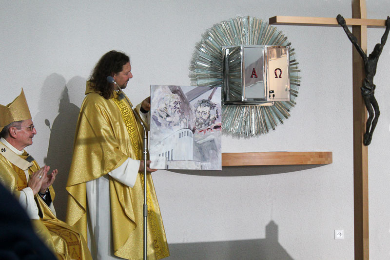 Miestni veriaci ako prejav vďaky venovali farárovi obraz svätého Filipa a Jakuba. Snímka: Monika Šimoničová