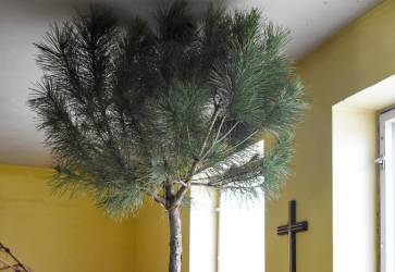 Exotické biblické dreviny museli na zimu uskladniť do hospodárskej budovy, aby vonku nezmrzli. Snímka: KN/Monika Šimoničová