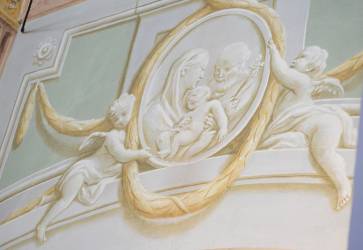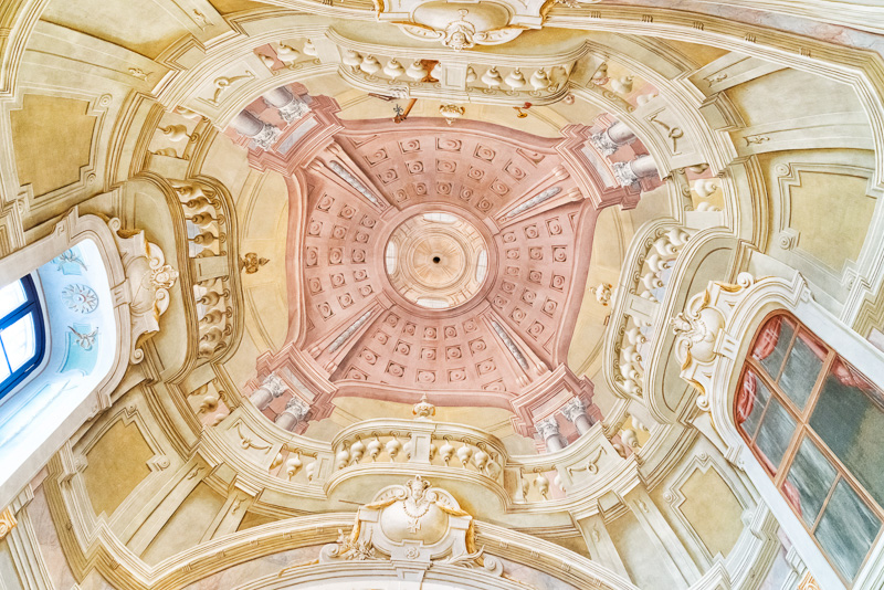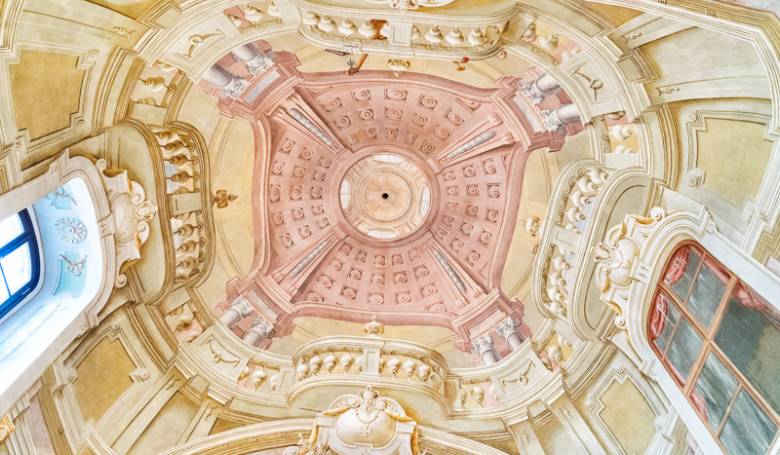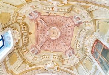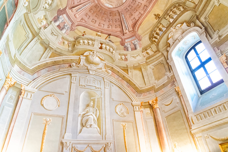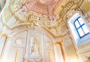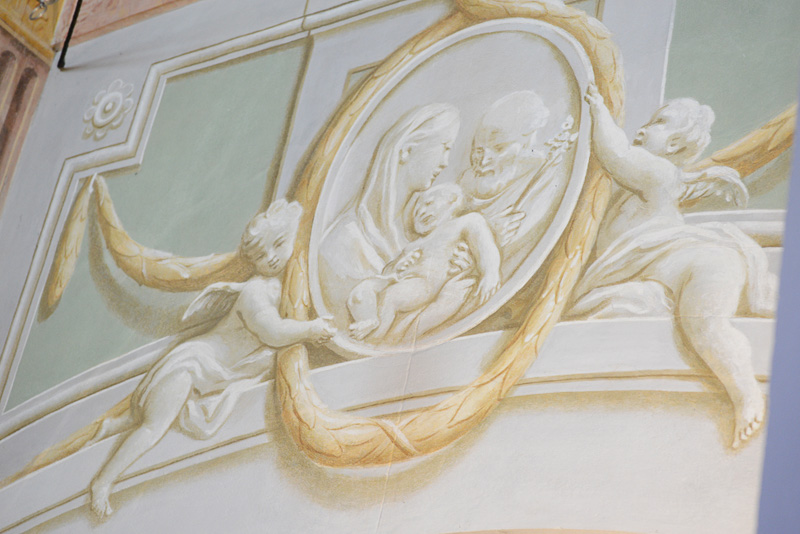 Steny kaplnky zdobia pôvodné rokokové a klasicistické fresky, stropy zasa iluzívne maľby. Ich autorom je viedenský maliar Jozef von Pichler. Snímka: Erika Litváková