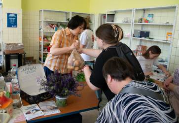 Darina prišla do Centra solidarity prvýkrát, preto sa najskôr musela zaregistrovať. Snímka: Erika Litváková