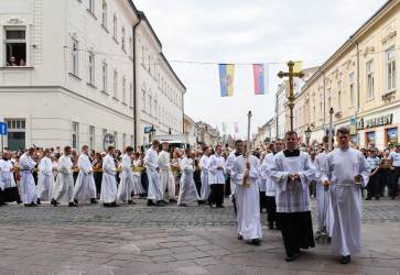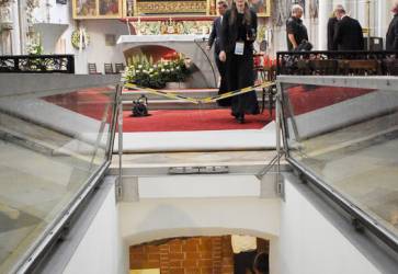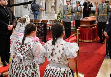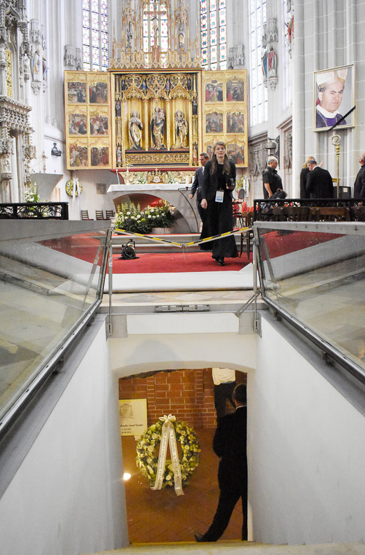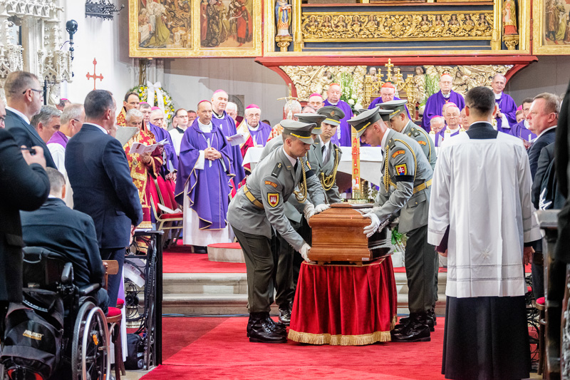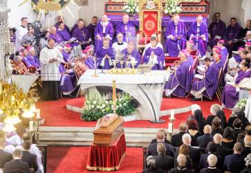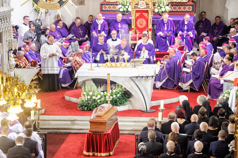 Pohrebnú svätú omšu celebroval český kardinál Dominik Duka spolu s poľským kardinálom Stanisławaom Dziwiszom a maďarským kardinálom Pétrom Erdő. Snímka: Anna Stankayová