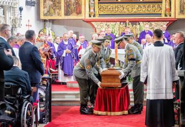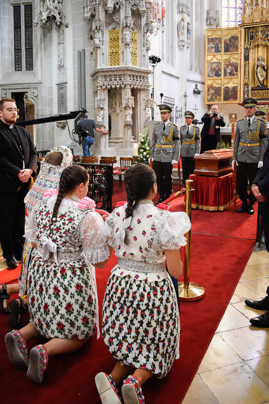 Po kondolenciách preniesla čestná stráž rakvu s pozostatkami zosnulého kardinála do bočnej kaplnky. Snímka: Anna Stankayová