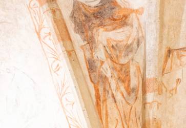 Freska zobrazujúca sväticu s rakom sa nachádza na klenbe, vznikla v druhej fáze freskovej výzdoby kostola na prelome 14. a 15. storočia. Snímka: Erika Litváková/KN