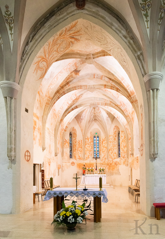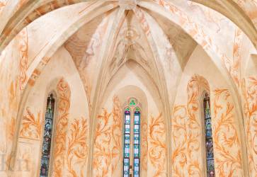 Rastlinné motívy vo svätyni - čo je úplný nezvyk - môžu evokovať rajskú záhradu, ale aj ratolesti, ktoré vyrastajú z viniča a rastú smerom k Bohu. Snímka. Erika Litváková/KN