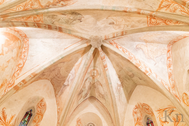 Freska Pantokratora je umiestnená v ukončení presbytéria, tiež je datovaná do druhej fázy freskovej výzdoby kostola na prelome 14. a 15. storočia. Snímka: Erika Litváková/KN