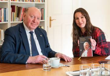 So šéfredaktorkou Spolku svätého Vojtecha Martinou Grochálovou. Snímka: Katolícke noviny/Erika Litváková