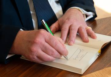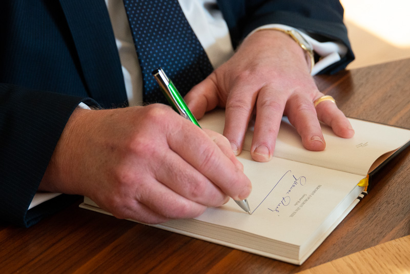 Gunnar Ribes ponúkol účastníkom prezentácie svoju knihu ako dar. Snímka: Katolícke noviny/Erika Litváková