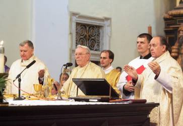 Kardinál Korec zakončil homíliu nezabudnuteľnými slovami: „Otec biskup Pavol, oroduj aj ty za nás!“ Snímka: Peter Zimen
