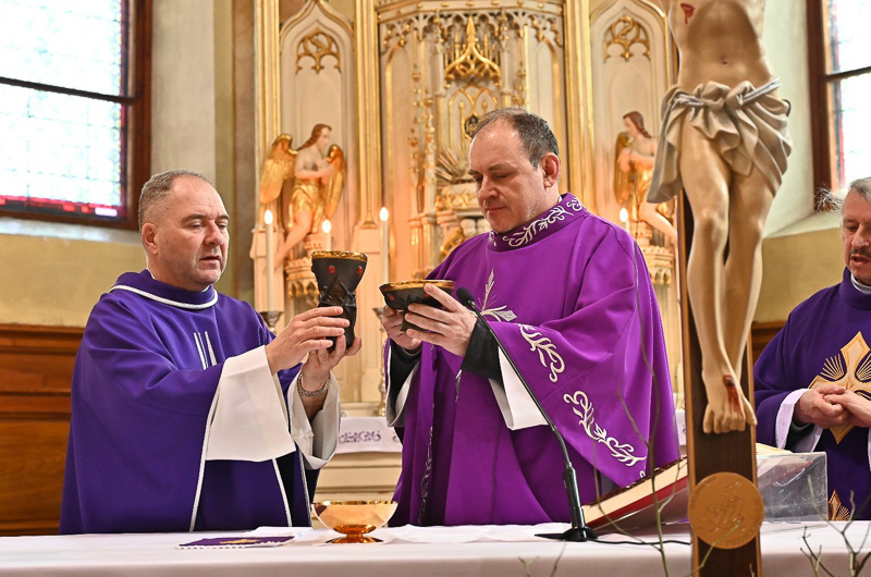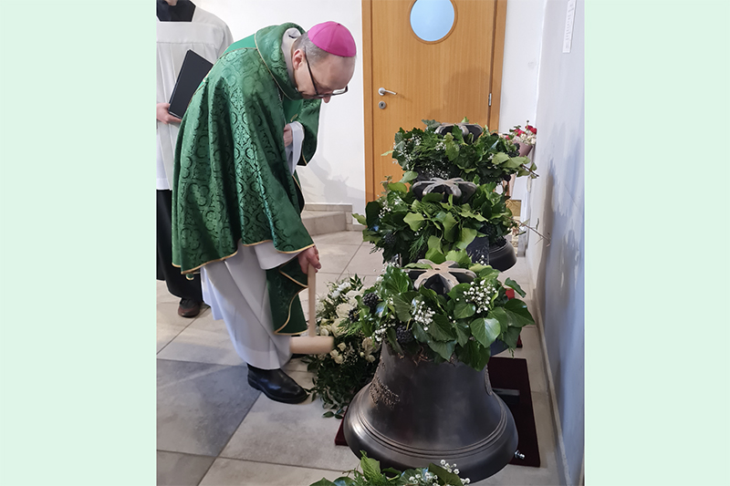 Bratislavský pomocný biskup Jozef Haľko požehnal 15. februára päť nových zvonov pre farnosť Bratislava-Rača. Snímka: Anna Stankayová
