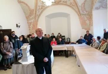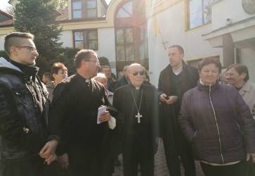 Na nádvorí Apoštolskej nunciatúry v Bratislave privítal pútnikov apoštolský nuncius na Slovensku Giacomo Guido Ottonello. Snímka: Adrián Boháč