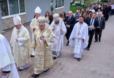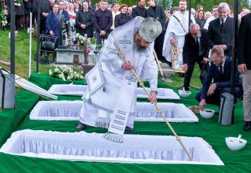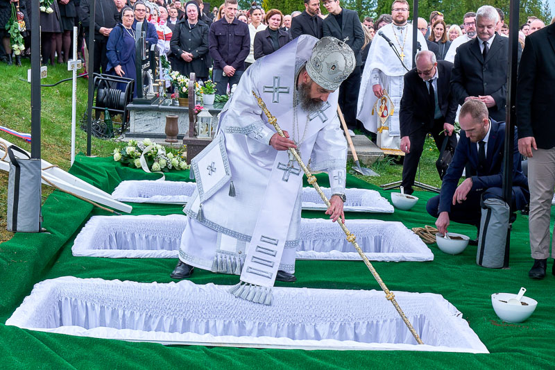 Gréckokatolícky arcibiskup Jonáš Maxim urobil znak kríža na všetky svetové strany v hrobe, čo naznačuje zapečatenie hrobu. Nezapečaťuje ho však navždy, ale len do druhého Kristovho príchodu. Snímka: Michal Petriľák