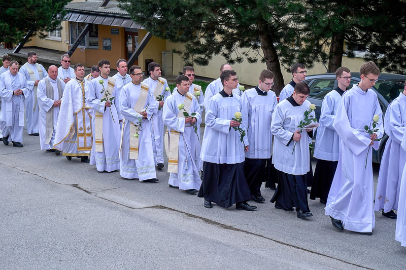 Biskup František Trstenský sa snažil vzbudiť u pozostalých kresťanskú nádej a útechu ľudského žiaľu, pretože dievčatá odišli v milosti posväcujúcej. Snímka: Michal Petriľák