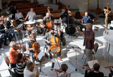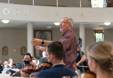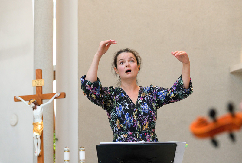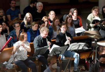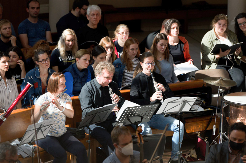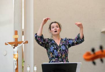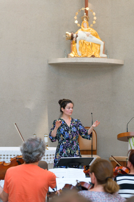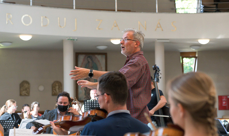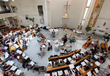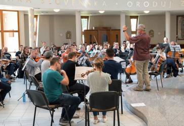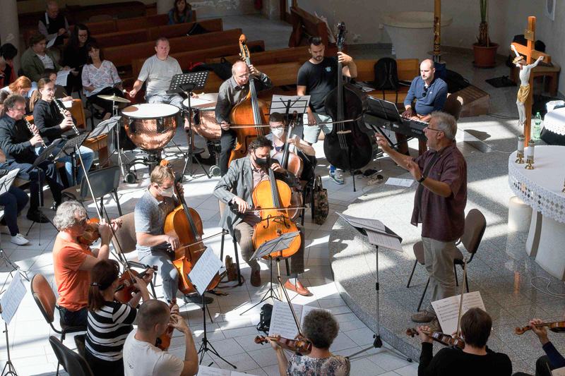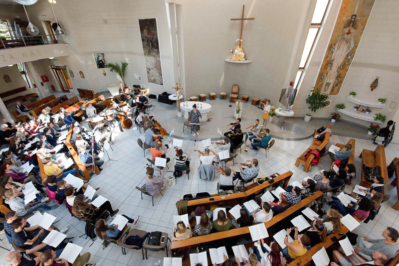 Hudobné teleso sa pripravovalo v Kostole Sedembolestnej Panny Márie v Petržalke-Lúkach. Snímka: Ján Lukáš