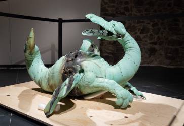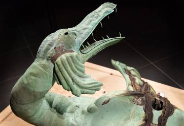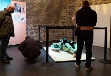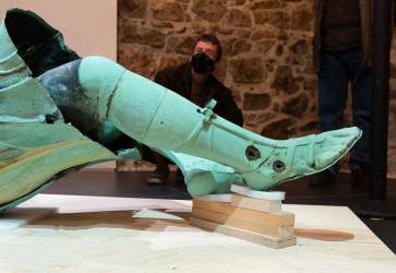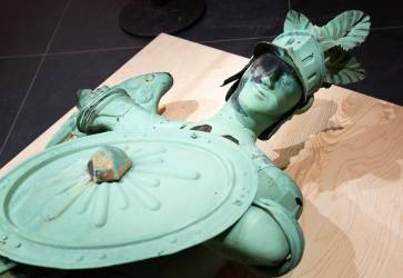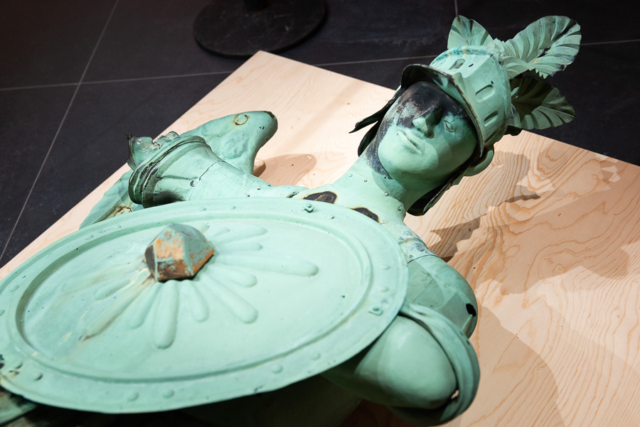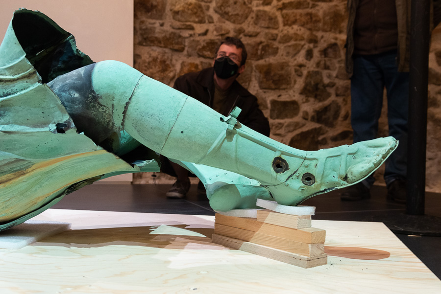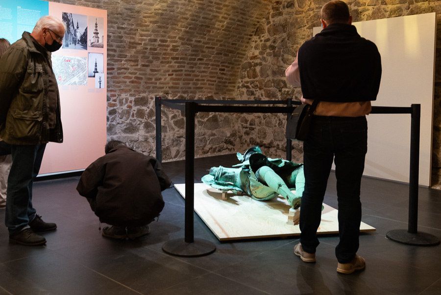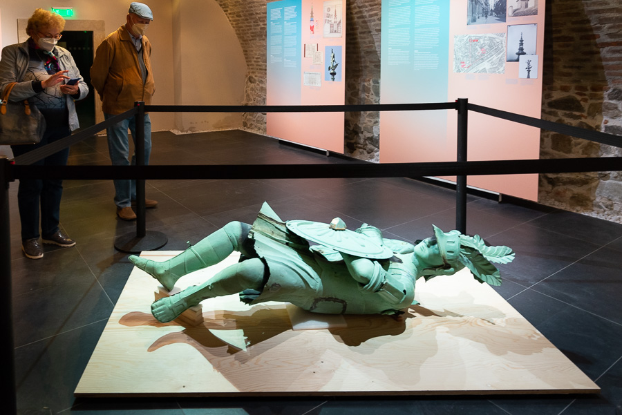 Po sňatí sochy z vrcholu Michalskej veže 20. septembra 2021 bolo dielo vystavené pre verejnosť v bratislavskej Starej radnici. Snímka: Erika Litváková