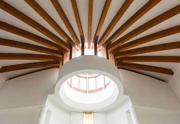 Po vstupe do košického kostola priťahuje oko veriaceho prírodné svetlo prichádzajúce zhora (zo svetlíka). Veriacim pripomína, odkiaľ sa očakáva príchod Krista i to, že Kristus je svetlo sveta. Snímka: archív rehole augustiniánov