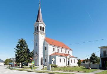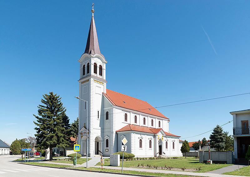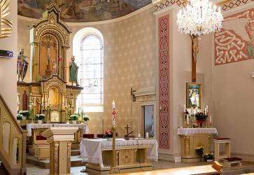 Neorenesančnému kostolu v Zlatých Klasoch dominuje oltár z rovnakého obdobia. Vedľa neho je oltár zasvätený sv. Rite. V roku 2012 prešiel kostol kompletnou výmaľbou. Snímka: Erika Litváková