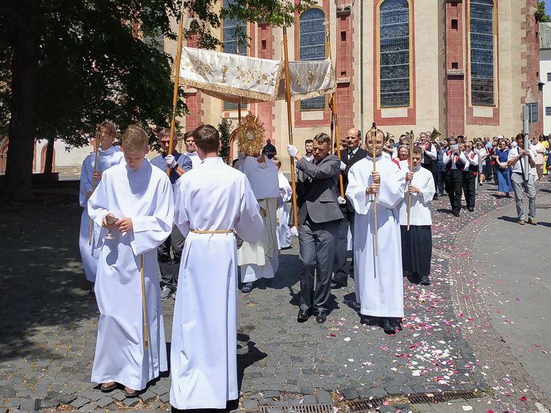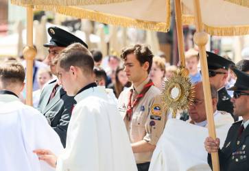 Eucharistická procesia viedla cez Námestie Štefana Moysesa, Námestie SNP až ku Katedrále sv. Františka Xaverského. Snímka: Jana Juneková