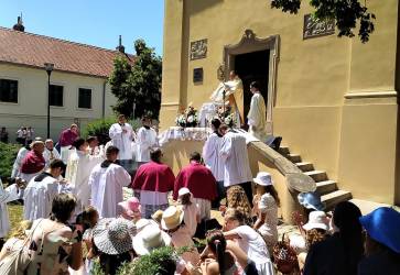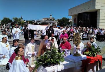 V Nitre sa na Svätoplukovom námestí konala tradičná celomestská verejná liturgická slávnosť. Snímka: Biskupstvo Nitra