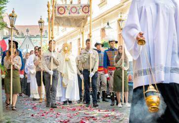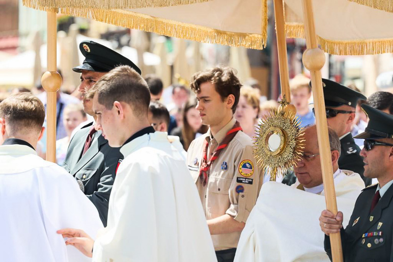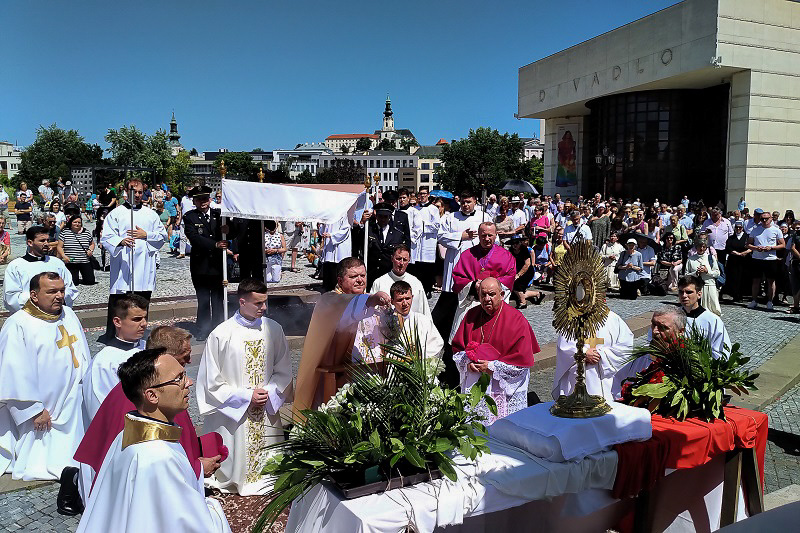 Eucharistická procesia viedla z Primaciálneho námestia pred Kostol sv. Jána z Mathy (Trojička).Snímka: Erika Litváková