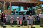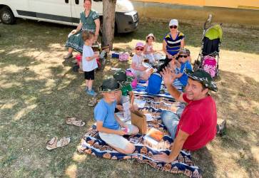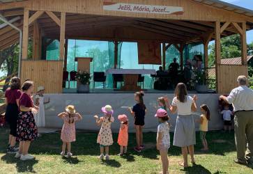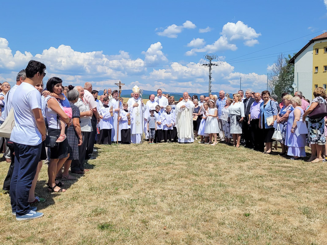 26. júna v Poltári pri Kostole sv. Cyrila a Metoda miestni farníci aj hostia a jubilujúci manželia z celej Rožňavskej diecézy. Snímka: Andrea Katriňáková