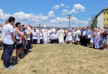 Za účasti nitrianskeho biskupa Viliama Judáka a pomocného biskupa Petra Beňa sa v nedeľu na kalvárii uskutočnilo aj stretnutie rodín Nitrianskej diecézy. Snímka: Tibor Ujlacký