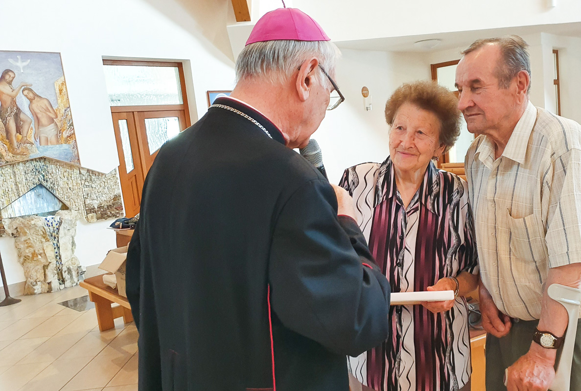 Žilinský biskup Tomáš Galis vrúcnymi slovami ocenil dlhoročných manželov. Snímka: Sekcia pre rodinu Žilinskej diecézy