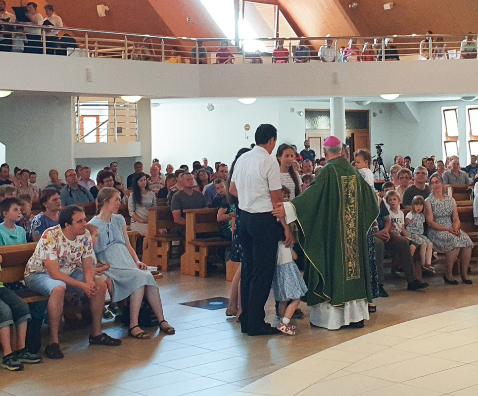 V kostole najväčšej sídliskovej farnosti Žilina-Vlčince sa nedeľné diecézne stretnutie rodín uskutočnilo s biskupom Tomášom Galisom. Snímka: Sekcia pre rodinu Žilinskej diecézy