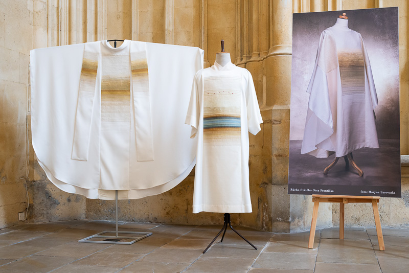 Nosné exponáty výstavy sú rúcha zo svätej omše, ktorú slávil pápež František 15. septembra 2021 v Šaštíne. Snímka: Erika Litváková