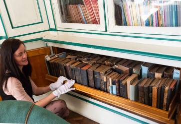 Najväčší podiel na tvorbe a obohatení knižnice mal dlhoročný správca spolku Ján Pöstényi. Posledný vzácny odkaz spolkovej knižnici je osobná knižnica historika Hadriána Radvániho. Snímka: Erika Litváková