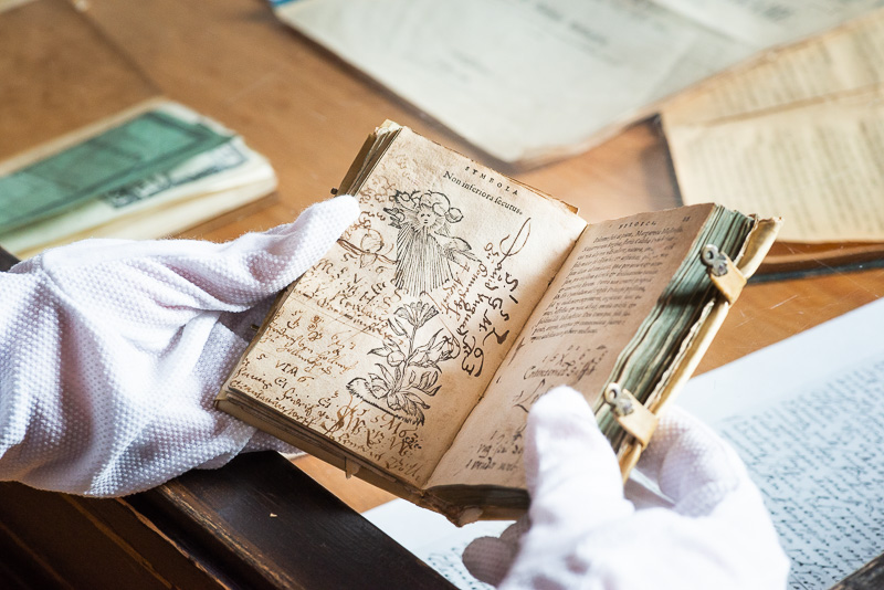 Obrázkovo-opisná Hrdinská symbolika v latinčine zo 16. storočia s ručne písanými poznámkami a pekne zachovaným kovaním patrí medzi „vreckové“ tituly knižnice. Snímka: Erika Litváková