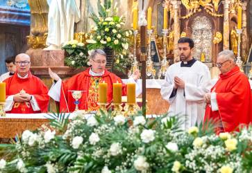 Hlavným celebrantom svätej omše bol nový predseda spolku Ján Kuboš. Snímka: Erika Litváková