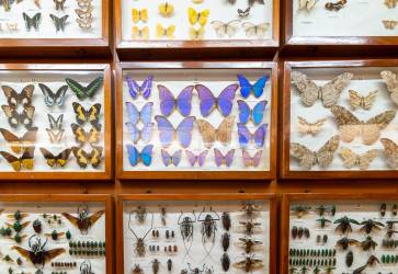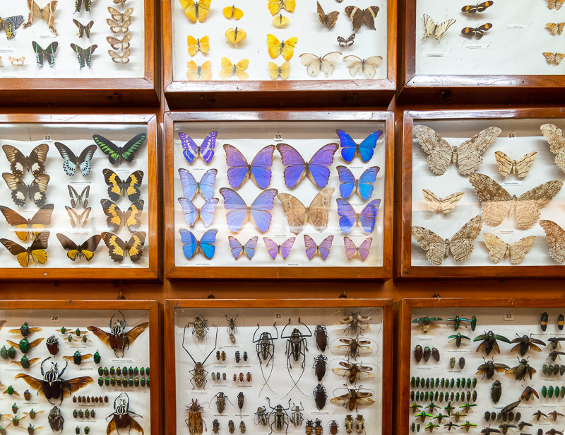 Návštevníci misijného múzea môžu obdivovať neónovo modré morfové amazonské motýle, desaťcentimetrových kamerunských chrobákov Goliášov, nebezpečné tarantuly aj jedovatých škorpiónov. Našťastie len za sklom. Snímka: Erika Litváková