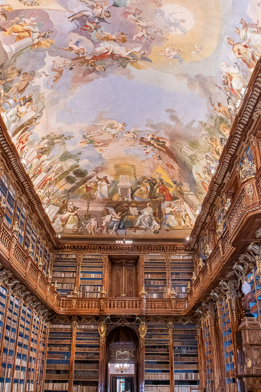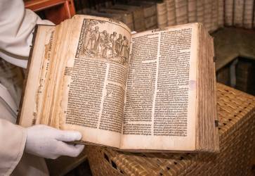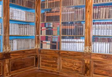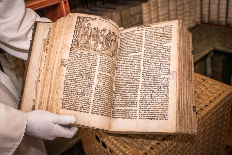 Teologická sála je najstaršia časť knižnice. Na severnej stene Teologickej sály sa nachádzajú Biblie v rozličných jazykoch a z rozličných období. Snímka: Martina Houdek