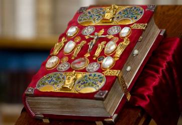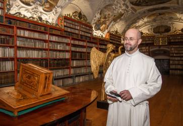 Originál Strahovského evanjeliára je uložený v trezore. Jeho kópiu si však môžete prezrieť počas prehliadky knižnice. Snímka: profimedia.sk