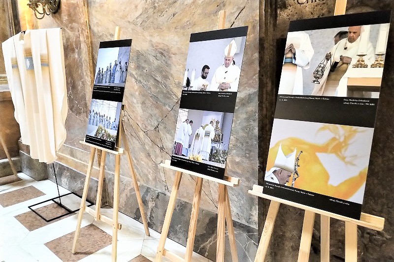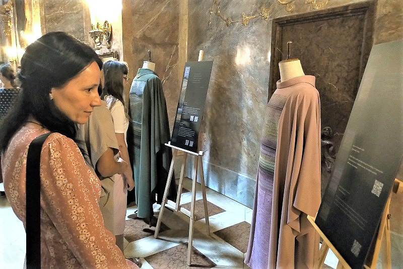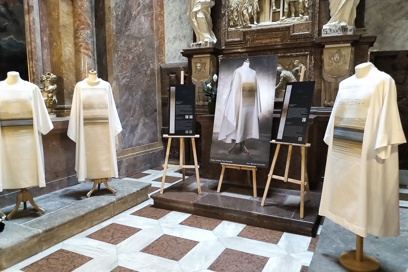 Dominantou celého súboru siedmich autorsky vytvorených rúch je slávnostné rúcho pre pápeža Františka. Snímka: Tibor Ujlacký