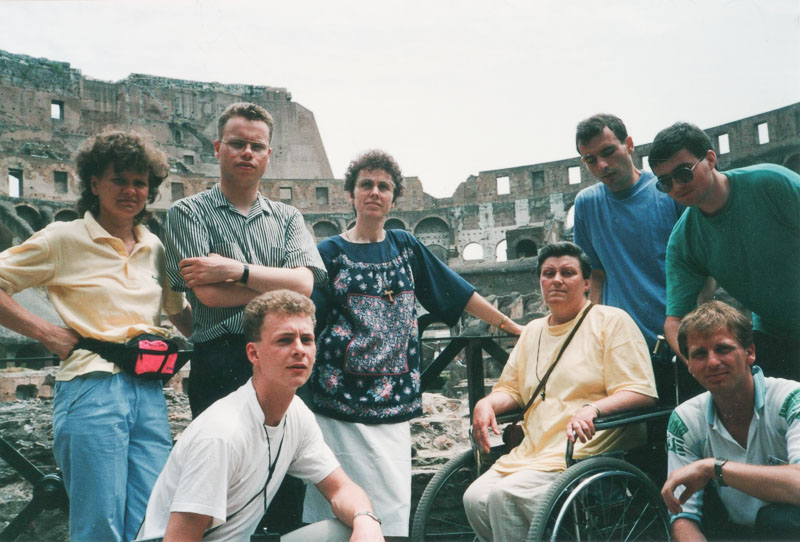 V slávnom Koloseu v Ríme. Dušan Berta ako seminarista na snímke vľavo dolu Snímka: archív Karolíny Došekovej