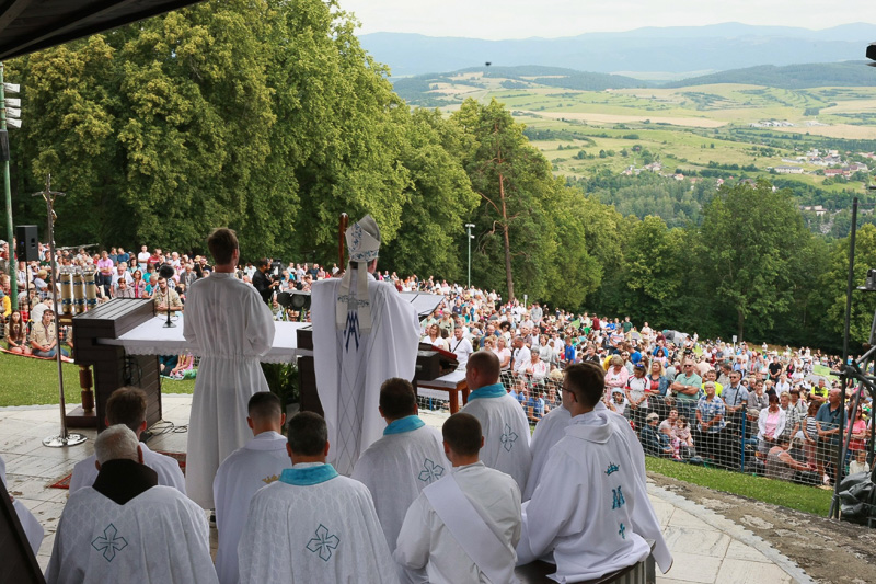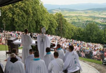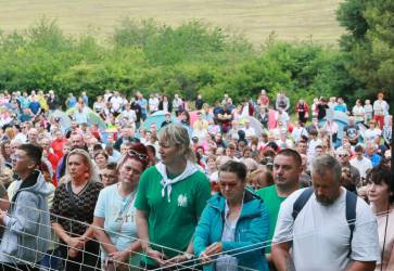 Len počas soboty navštívilo podľa odhadov organizátorov Mariánsku horu vyše stotisíc pútnikov. Snímka: Martin Magda st.