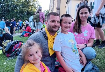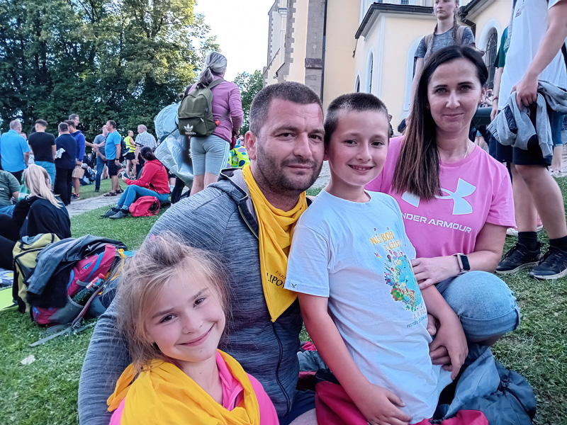 Rodina Semanovcov prišla z farnosti Lipovce. Približne 40 kilometrov pešo pokorili aj deti Paľko a Simonka. Snímka: Marián Špacai