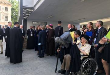 Na stretnutie s pápežom prišli predstavitelia židovskej obce i katolíckej Cirkvi. Snímka: Anna Stankayová