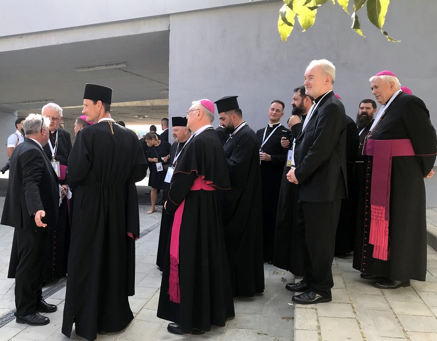 Biskupi sa zhromažďujú na Rybnom námestí. Snímka: Anna Stankayová