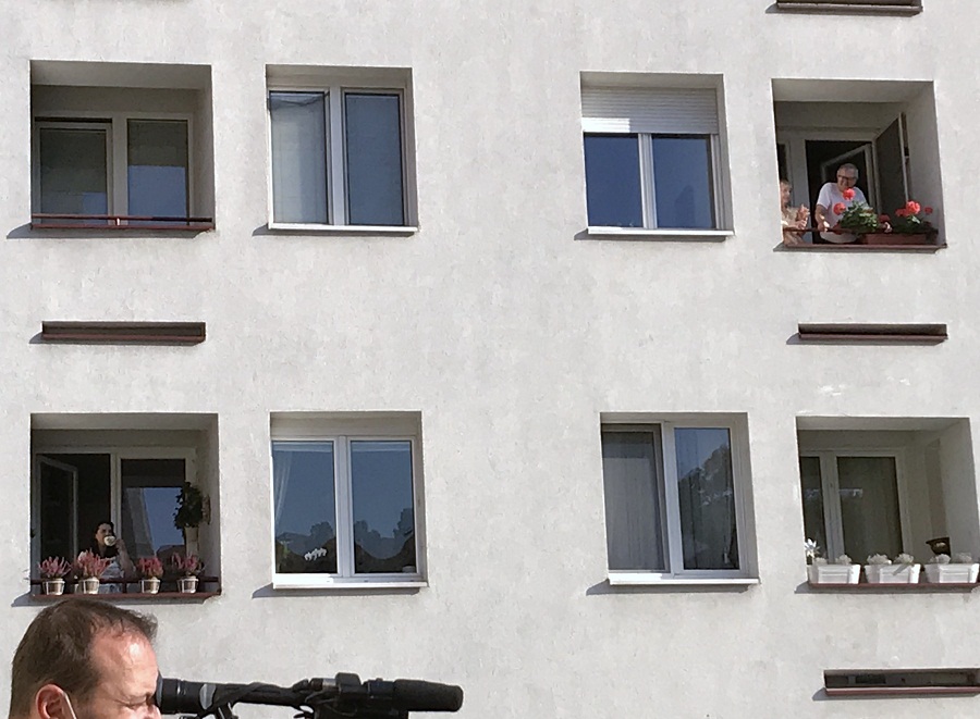 Stretnutie si nenechali ujsť ani obyvatelia priľahlej bytovky. Snímka: Anna Stankayová